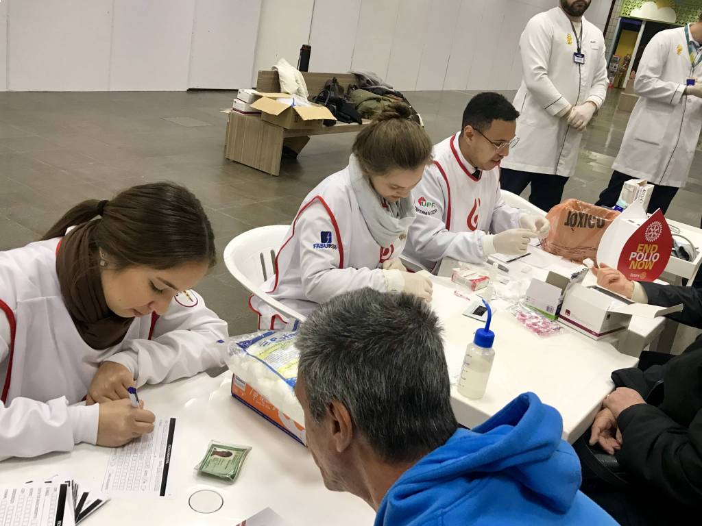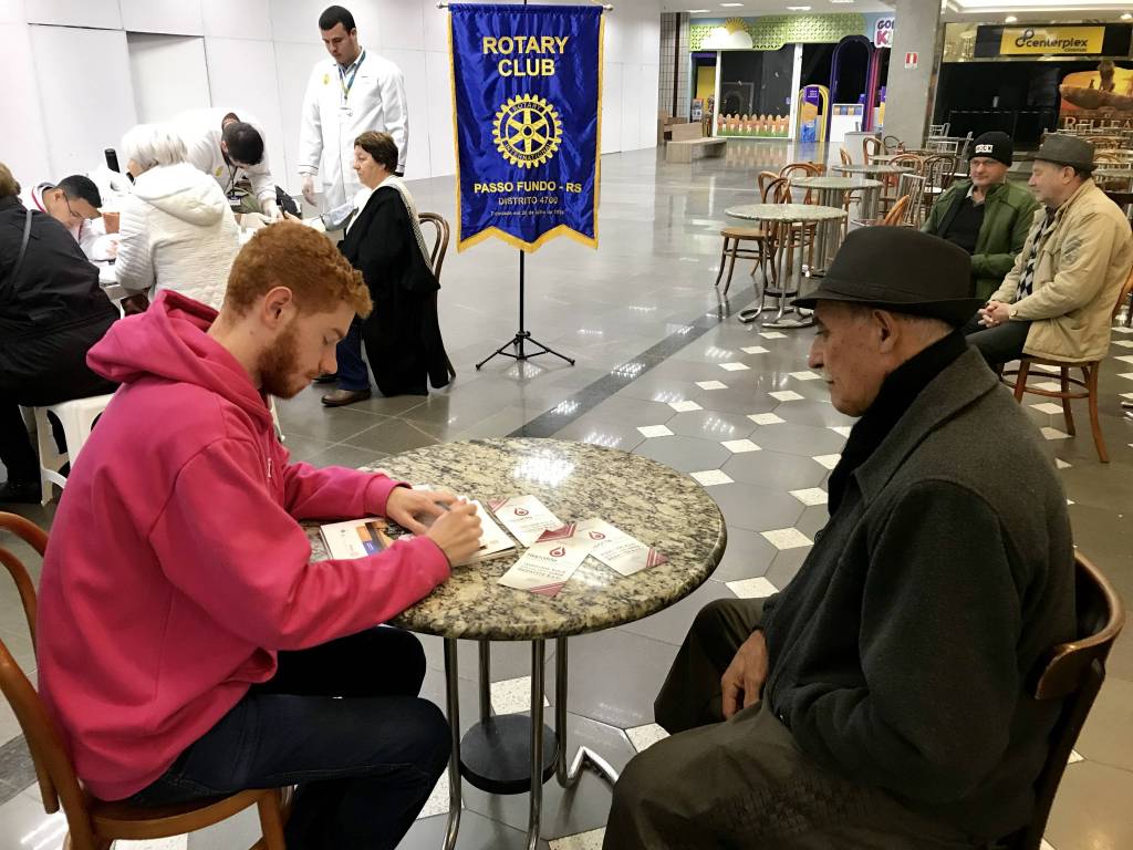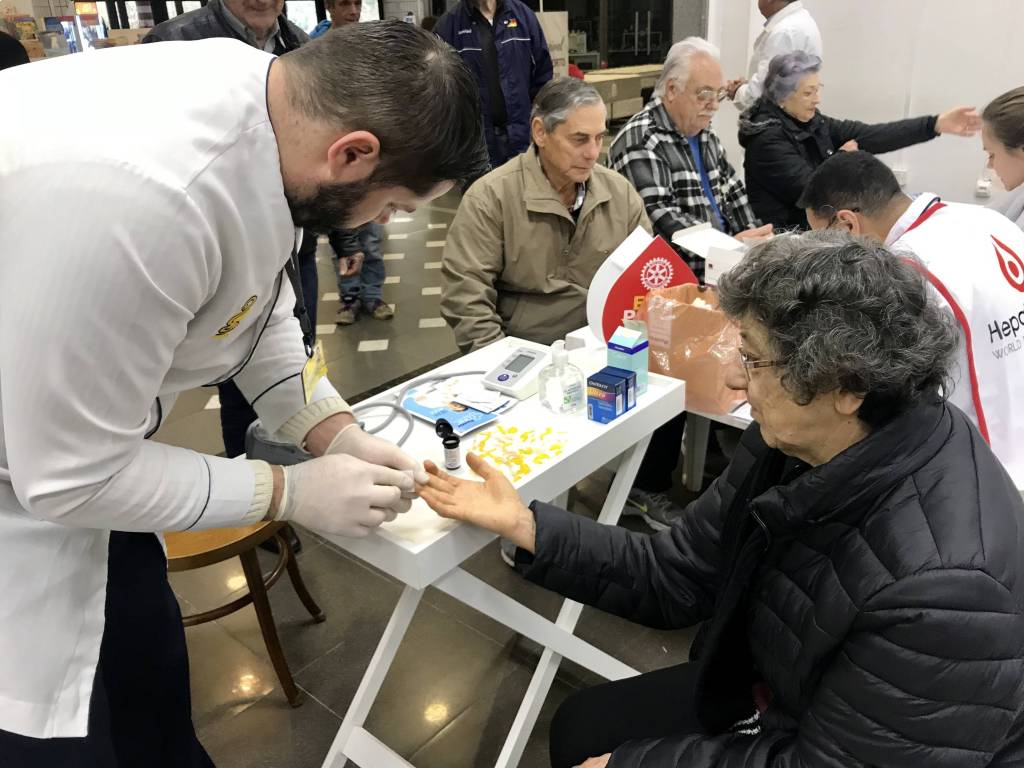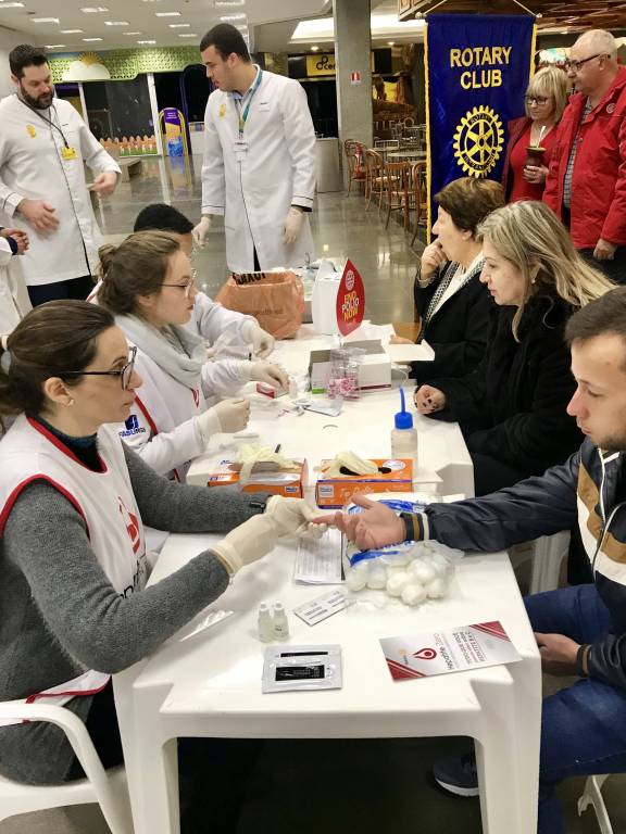 O Rotary Club de Passo Fundo promoveu a realização de testes gratuitos para diagnóstico da Hepatite Viral do tipo C, neste sábado, no Hipermercado Bourbon Passo Fundo. O evento está inserido no calendário da Semana Hepatite Zero, em diversas partes do mundo. A atividade resulta de uma parceria com a Associação Brasileira de Portadores de Hepatite - ABPH com Rotary Clubs de todo o país. Na ocasião, 120 pessoas (com ênfase em maiores de 40 anos de idade) foram convidadas a realizar gratuitamente o teste, cujo resultado pôde ser conferido em poucos minutos. Uma pessoa, com resultado positivo, foi acolhida por profissional especializado, informada sobre as providências a serem tomadas e encaminhada a acompanhamento junto à Associação Brasileira dos Portadores de Hepatite (ABPH).