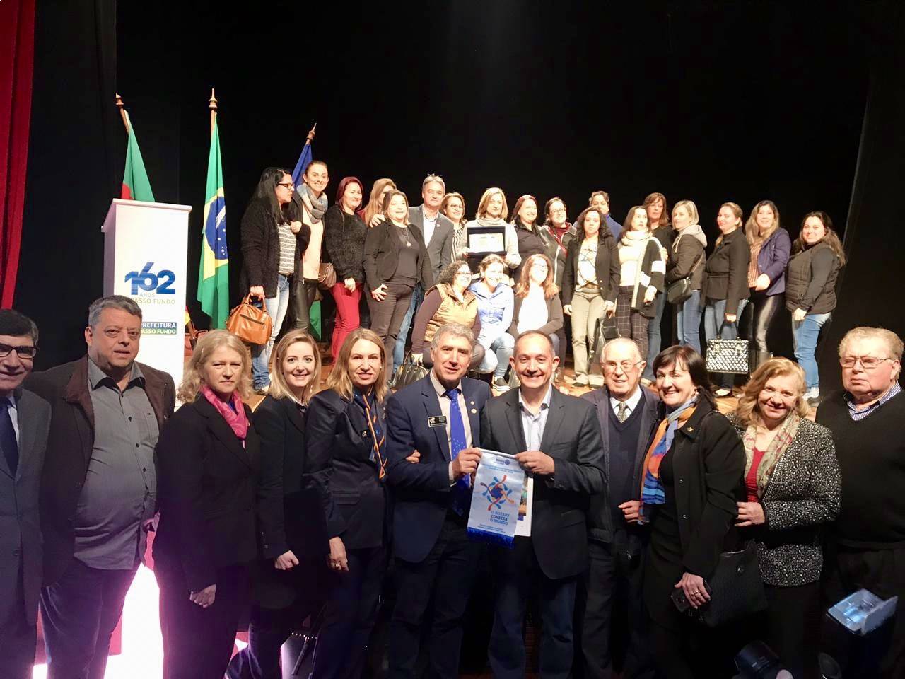 A presidente Edilvani Santos Souto Corrêa recebeu a honraria em nome do clube, que também esteve representado por diversos rotarianos, inclusive o Governador Distrital Luiz Fassina, que fazia sua visita oficial a Passo Fundo na data.