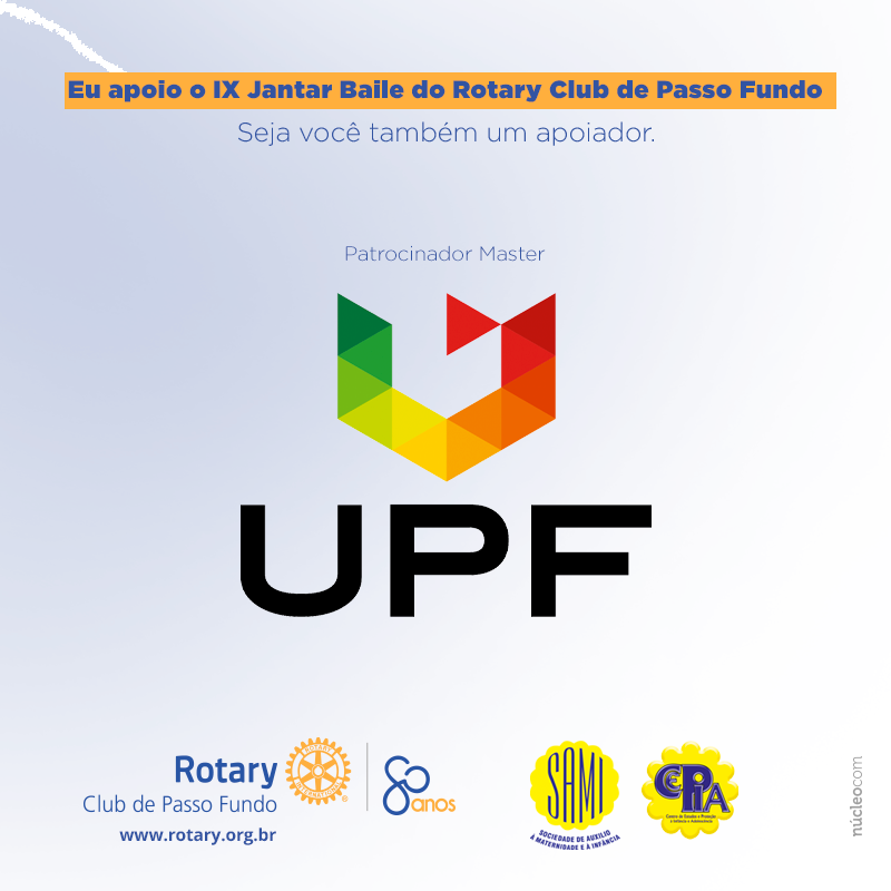 Nada melhor do que abrir a nossa divulgação com o primeiro patrocinador máster, que é a Universidade De Passo Fundo, nossa parceira de longa data. Em 2019, mais uma vez, a UPF coloca a equipe da UPFTV à disposição do Rotary Club de Passo Fundo para produção do vídeo institucional para a Sami/cepia Pf, que será lançado na noite do Jantar Baile e poderá ser utilizado, posteriormente, para apresentação dos seus trabalhos e captação de novos parceiros. #BaileRotary2019