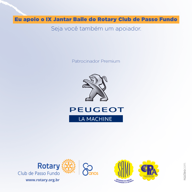Parceira desde o início desse grande projeto, a La Machine Peugeot também confirmou seu patrocínio para a nona edição do Jantar Baile Beneficente do Rotary Club de Passo Fundo. Agradecemos à empresa pela confiança e solidariedade e ao companheiro Hérison Ernst pela captação do patrocínio. #BaileRotary2019
