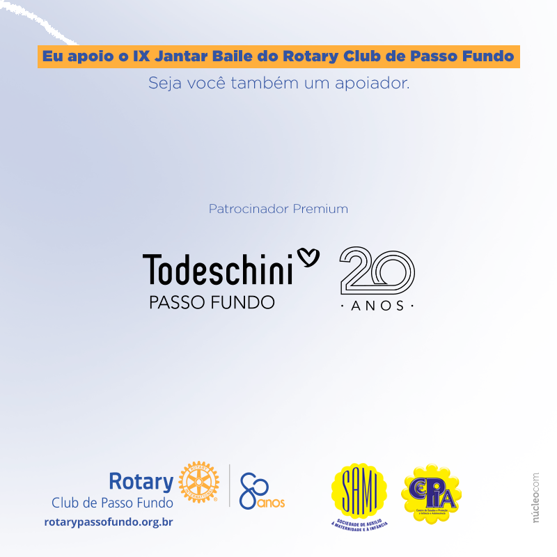 A Todeschini Passo Fundo vem se juntar, pela primeira vez, ao grupo de patrocinadores do Jantar Baile Beneficente do Rotary Club de Passo Fundo.