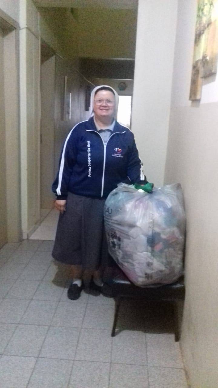 Entrega de retalhos para oficina de artesanato do Cejume Passo Fundo
