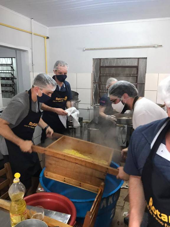 O Rotary Club de Passo Fundo realizou, no último sábado (24), a 14a edição do seu famoso Galeto com Massa. Devido à pandemia, neste ano, a entrega aconteceu pelo sistema drive-thru, o que garantiu maior cuidado com a saúde dos trabalhadores e clientes, mas que acabou agilizando em muito a entrega. Foram distribuídos, junto com as refeições, panfletos do clube, da campanha End Polio Now e saquinhos do Projeto Descarte Consciente (para descarte de luvas e máscaras descartáveis). Foi ainda conferido o título de sócio honorário ao ex-rotariano Luciano Gonzaga Souto Corrêa. O evento, mesmo seguindo todas as medidas de segurança, foi oportunidade de muito companheirismo entre os rotarianos, familiares, rotaractianos e voluntários.